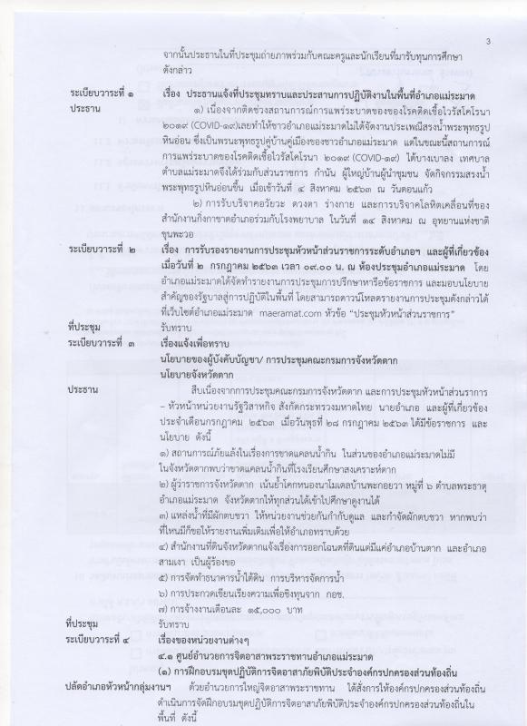 อำเภอแม่ระมาด ขอรายงานการประชุมหัวหน้าส่วนราชการระดับอำเภอฯ และผู้เกี่ยวข้อง ประจำเดือนสิงหาคม ๒๕๖๓ ครั้งที่ ๘/๒๕๖๓ ในวันอังคารที่ ๔ สิงหาคม ๒๕๖๓ เวลา ๑๓.๐๐ น. ณ หอประชุมที่ว่าการอำเภอแม่ระมาด อำเภอแม่ระมาด จังหวัดตาก