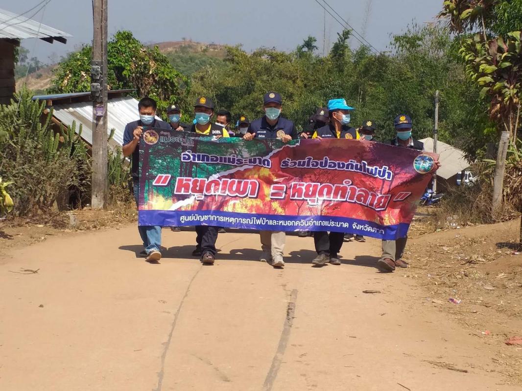 -วันที่ 28 ก.พ. 2564 ตั้งแต่เวลา 08.30 น. เป็นต้นไป นายเลิศศักดิ์ ทับผึ้ง นายอำเภอแม่ระมาด /ผอ.ศูนย์บัญชาการเหตุการณ์ไฟป่าและหมอกควันอำเภอแม่ระมาด มอบหมายนายพงษ์ศักดิ์ อุสาหะพงษ์สิน ปลัดอำเภอผู้ประสานงานประจำตำบลสามหมื่น, กำนัน ผู้ใหญ่บ้าน ฯลฯ ต.สามหมื่น , สมาชิก อส. , จนท.ตร.สภ.แม่ระมาด , จนท.ทหาร กองกำลังนเรศวร , จนท.เขตรักษาพันธุ์สัตว์ป่าแม่ตื่น , จนท.โครงการพระราชดำริฯ, จนท.อบต.สามหมื่น, จนท.หน่วยป้องกันรักษาป่า(กูเตอร์โกล) , ตก.2 , จนท.สถานีควบคุมไฟป่าแม่ตื่น , ร.ส.ท.ป.ม.4 ต.สามหมื่น และจิตอาสาพระราชทาน ร่วมกันเดินรณรงค์ประชาสัมพันธ์การป้องกันและแก้ไขปัญหาไฟป่าและหมอกควัน เพื่อสร้างการรับรู้ให้กับราษฏรในพื้นทีตำบลสามหมื่น ทั้ง 5 หมู่บ้าน ได้แก่ กลุ่มบ้านกูเตอร์ทะ ม.2 , กลุ่มบ้านกูเตอร์โกล,กลุ่มบ้านแสมใหญ่,กลุ่มบ้านแสม(กองคอง) ม.4 ,กลุ่มบ้านแสมแห้ง,กลุ่มบ้านละเผ่ใหม่ ม.1 , กลุ่มบ้านห้วยส้มป่อย ม.5 และบ้านหนองหลวง ม.3 ต.สามหมื่น ดังนี้
