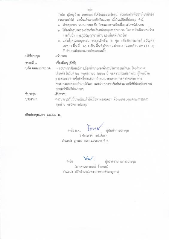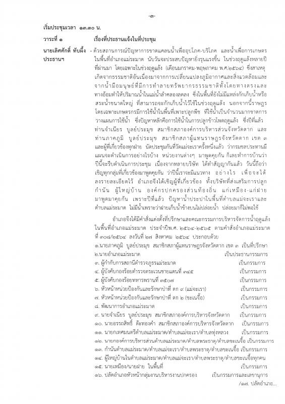 รายงานการประชุม เรื่องแก้ไขปัญหหาความเดือดร้อน กรณี การขาดแคลนน้ำเพาะปลูกในฤดูแล้ง วันพุธที่ ๒๖ ตุลาคม ๒๕๖๔ เวลา ๑๓.๓๐ น. ณ ห้องประชุมอำเภอแม่ระมาด