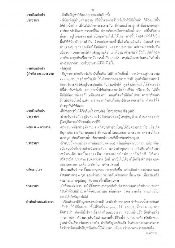 รายงานการประชุม เรื่องแก้ไขปัญหหาความเดือดร้อน กรณี การขาดแคลนน้ำเพาะปลูกในฤดูแล้ง