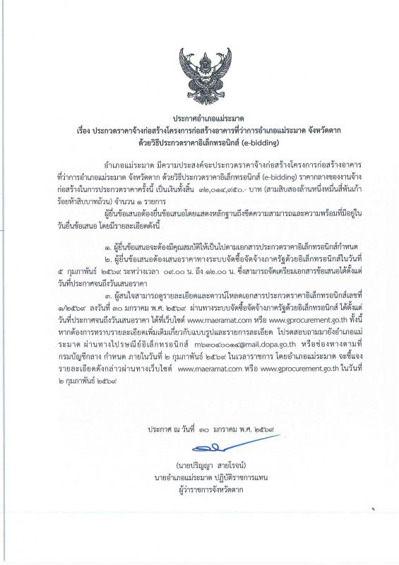 โครงการก่อสร้างอาคารที่ว่าการอำเภอแม่ระมาด จังหวัดตาก ด้วยวิธีประกวดราคาอิเล็กทรอนิกส์ (e-...